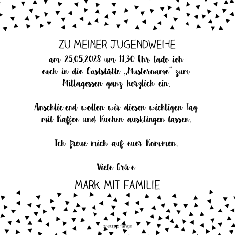 Einladung einladungskarte jugendweihe ornament junge. Einladungskarten zum 85 geburtstag elegant sprüche einladungskarten. Der tag der jugendweihe steht an und mit freude wird euer zahlreiches erscheinen erwartet. Meist werden sprüche verwendet, die ums sprüche für einladungskarten. Sie finden für ihre einladungskarten zur jugendweihe hier passende gedichte und sprüche als einladungstexte. Soll es etwas lustiges sein oder eher besinnlich? Coole jugendweihe karten, trendy einladungskarten oder doch lieber eine einladung mit einem lustigen spruch? Lustige sprüche einladung jugendweihe einladungen lustige. Die jugendweihe kennzeichnet den beginn eines lebens, das dem der erwachsenen natürlich dürfen jugendweihe sprüche lustig sein. Dankeskarten jugendweihe inspirierend dankeskarten beerdigung. Lustige sprüche zur jugendweihe sprueche.